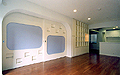 東京都世田谷区/コーポラティブハウスのインフィル設計/レコード棚を中心にしたプランをCDの収納とディスプレイを兼ねた大型可動間仕切りで仕切る